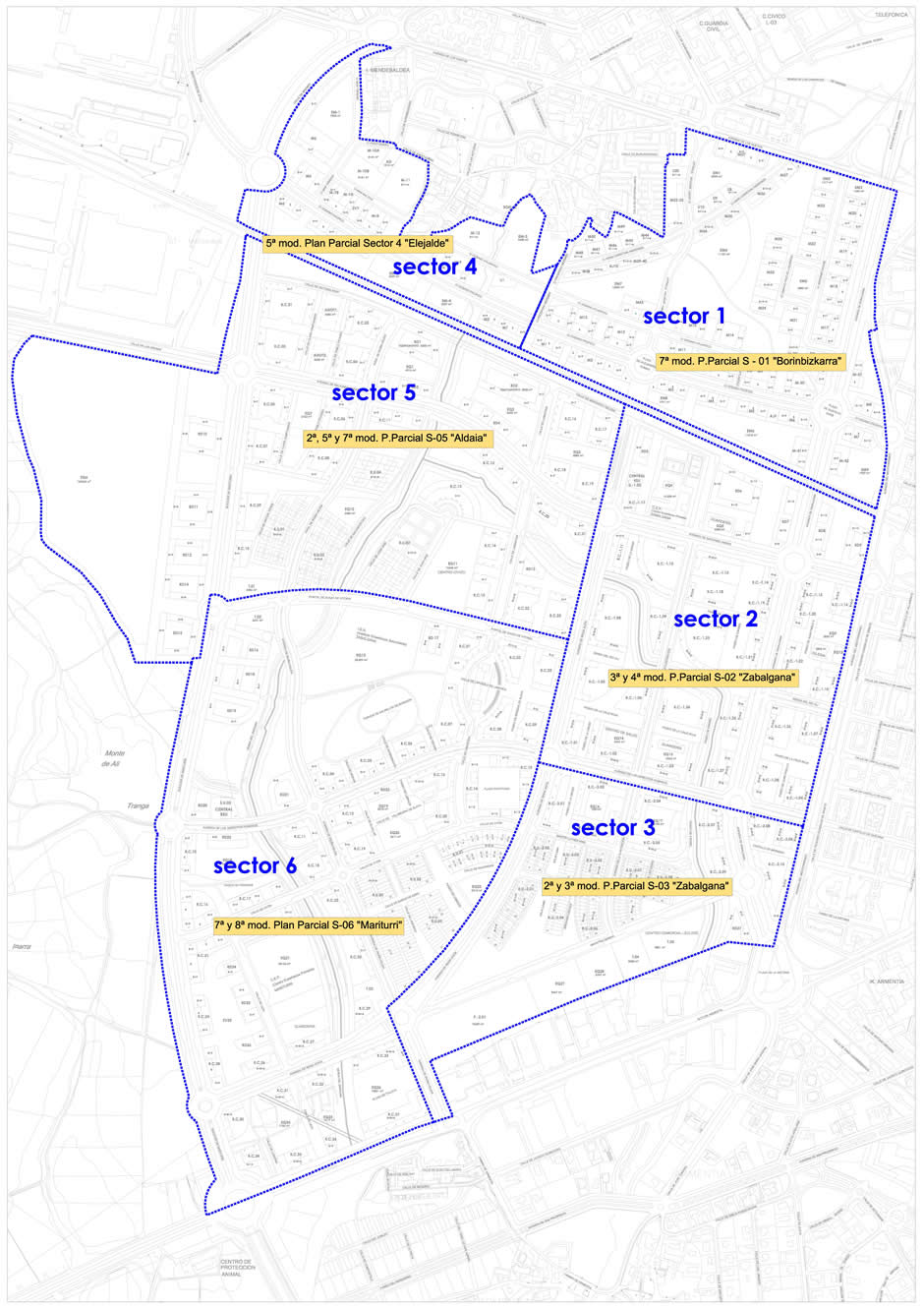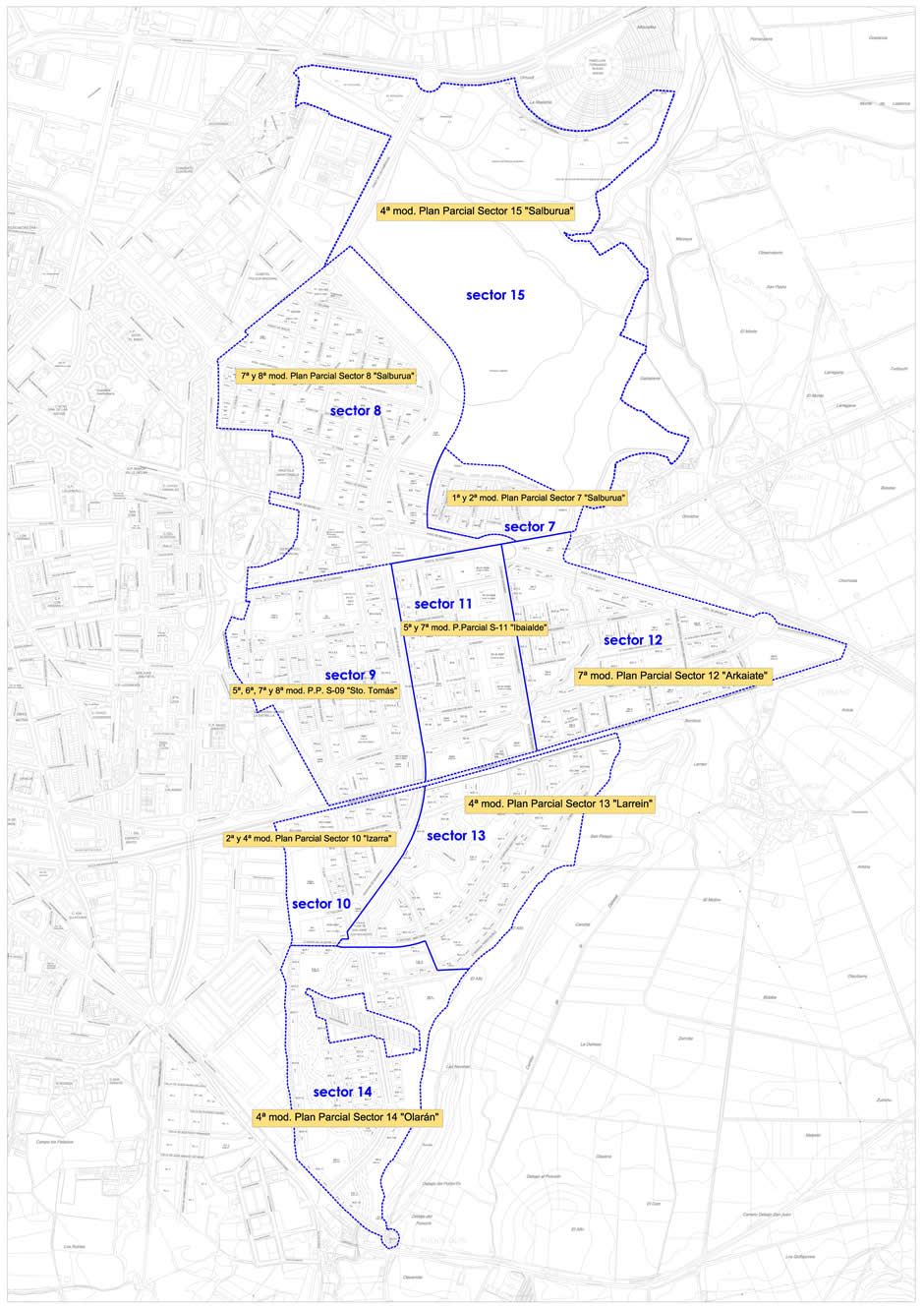 2013ra eguneratutako argibide planoa Alderdikako Plan Partzialen indarrean dauden aldaketekin “Salburuan”