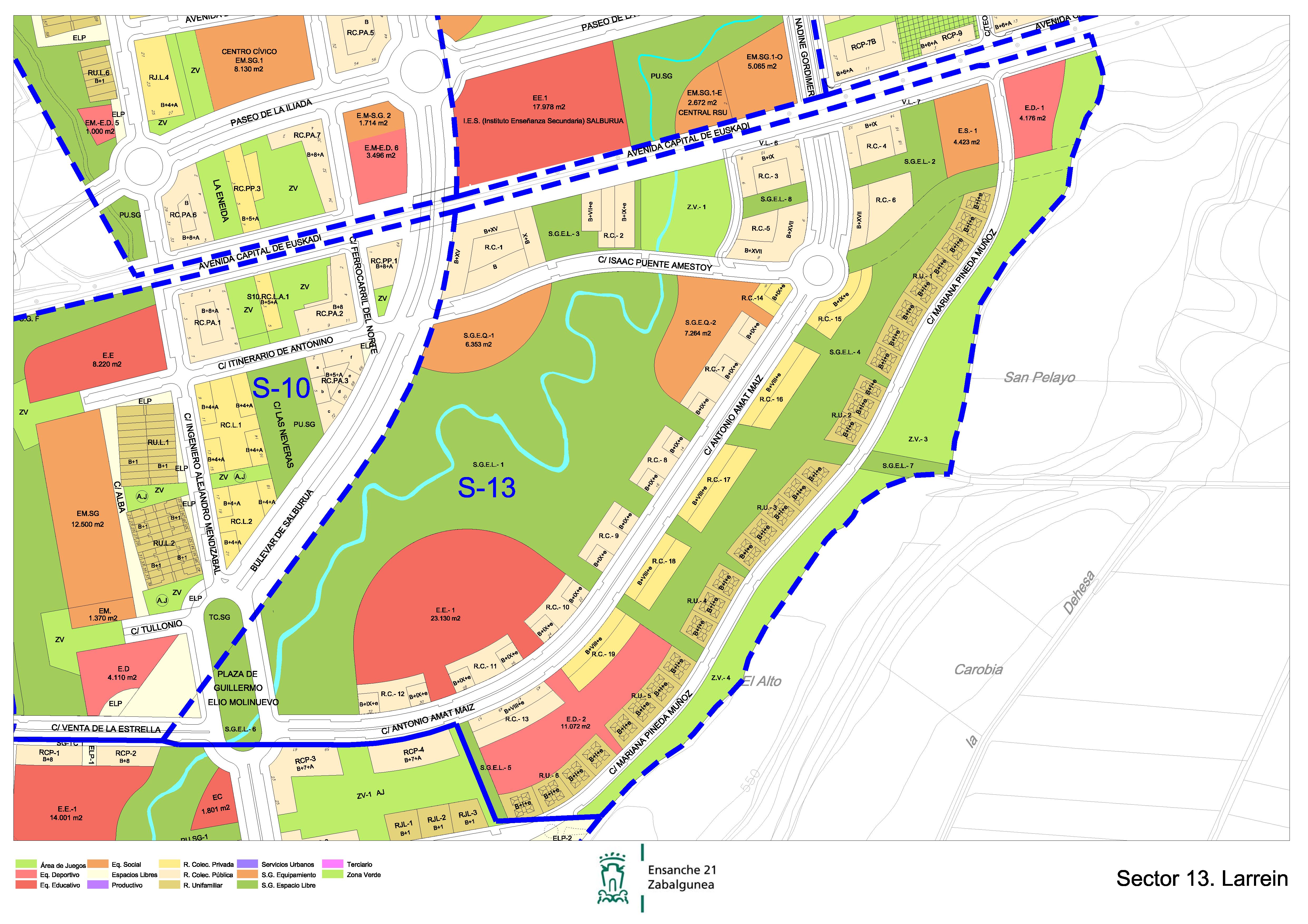 SALBURUA: 13 alderdia LARREIN Salburuako 13 alderdia 10 alderdiaren alboan dago Mendebaldetik, Alto de las Neverasen ondoan Ekialdetik eta trenbidearen alboan Iparraldetik.