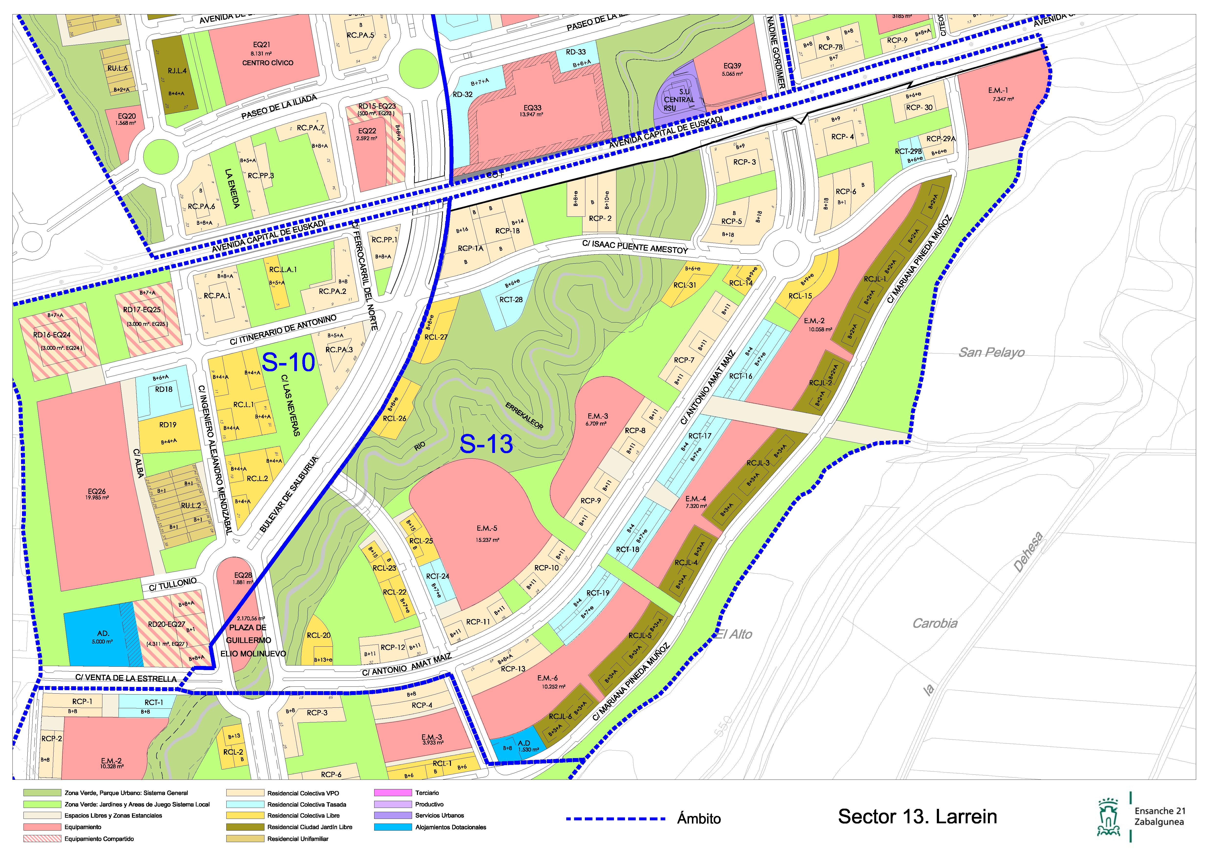 357.559 metro karratuko azalera dauka, batez ere etxebizitzetarako xedatua. 1.972 etxebizitza egiteko daude, horietako 104 elkarri atxikitutako etxebizitzak dira, 409 kolektibo askeak eta 1.459 (% 74a) babes ofizialekoak.